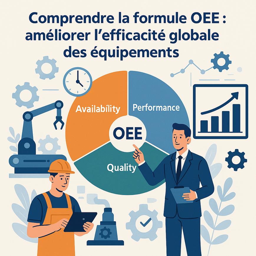 Le calcul de l’OEE repose sur trois axes : disponibilité, performance et qualité. Chacun est mesuré individuellement, puis multiplié pour obtenir un pourcentage global représentant l’efficacité de l’équipement.