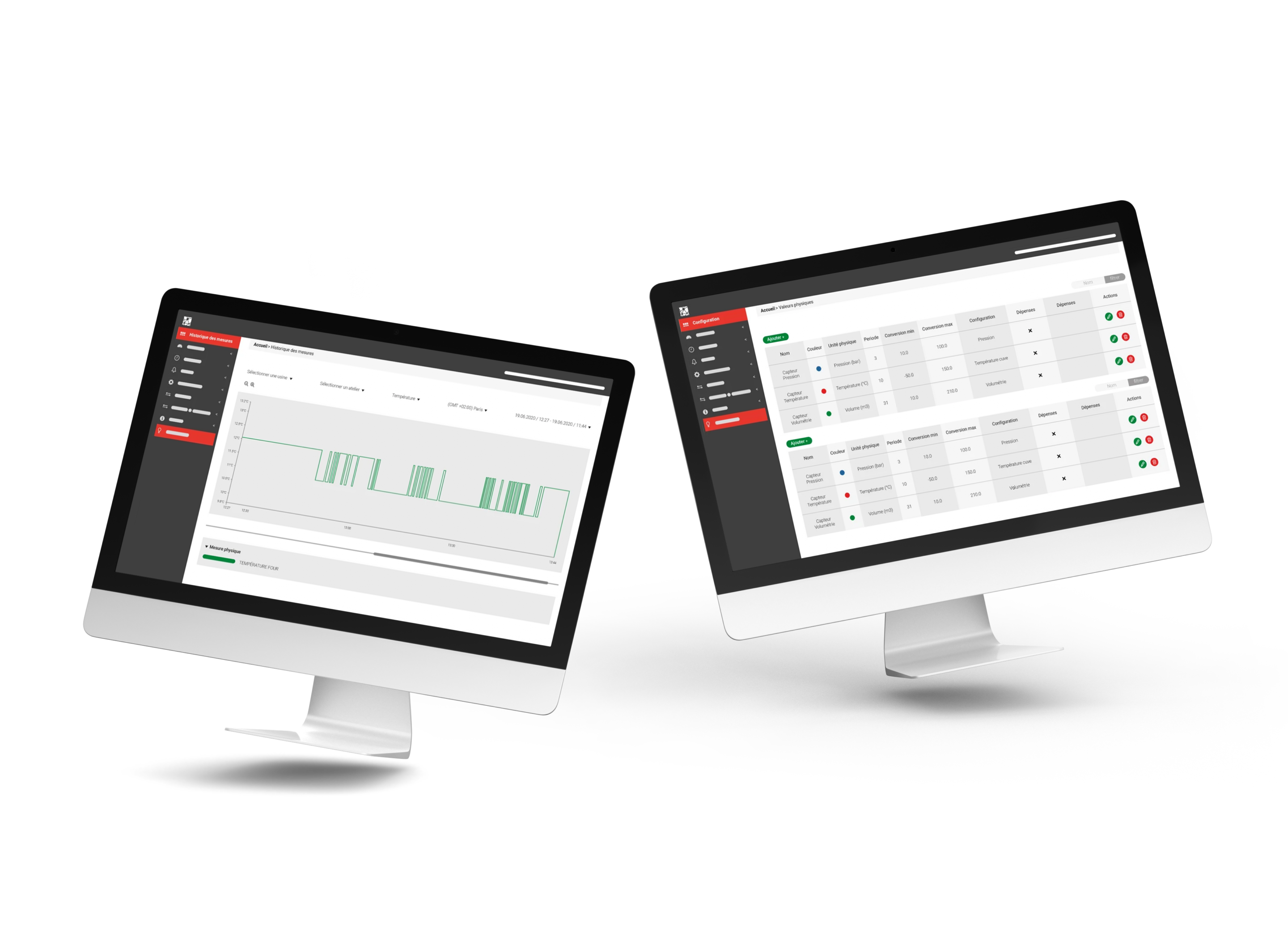 L’interface présente un tableau de bord détaillé où sont affichées l’ensemble des mesures physiques telles que la température, la pression, l’humidité, la volumétrie, le poids, etc., selon vos configurations de capteurs ou de connexion machine. Ces informations cruciales sont accessibles en un coup d’œil, facilitant l’interprétation des données et la prise de décisions rapides.