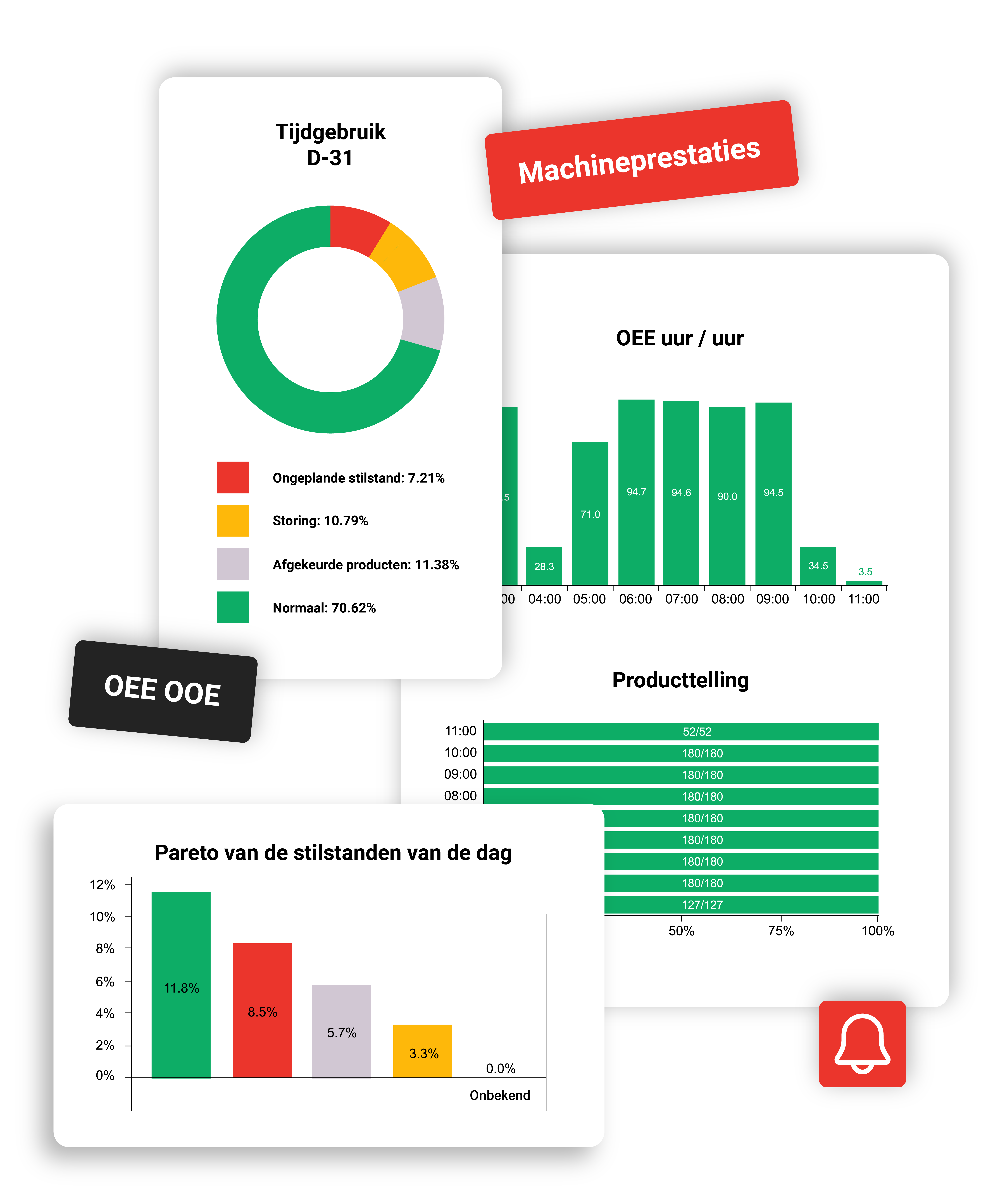 Ontvang direct waarschuwingen op je smartphone bij prestatieafwijkingen of machinestilstand. Blijf op de hoogte en reageer waar je ook bent, om onderbrekingen te minimaliseren en de productie-efficiëntie te maximaliseren.